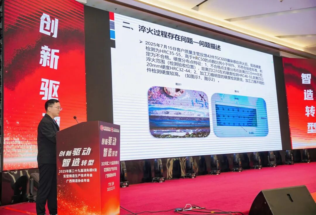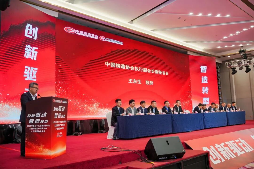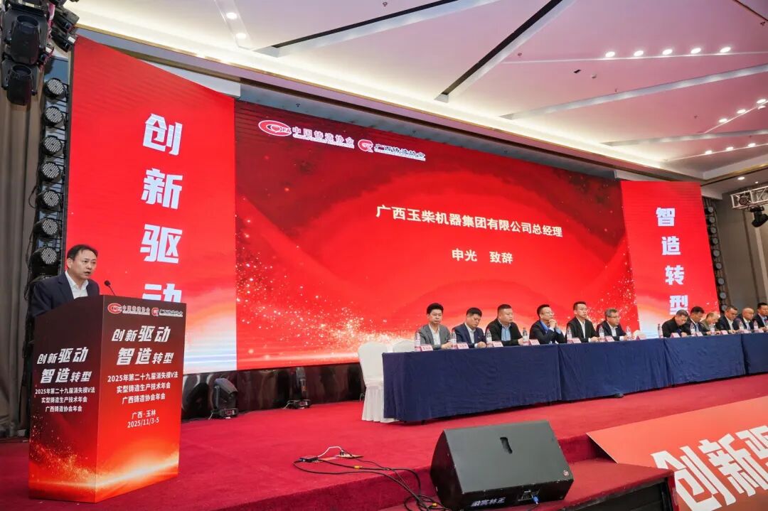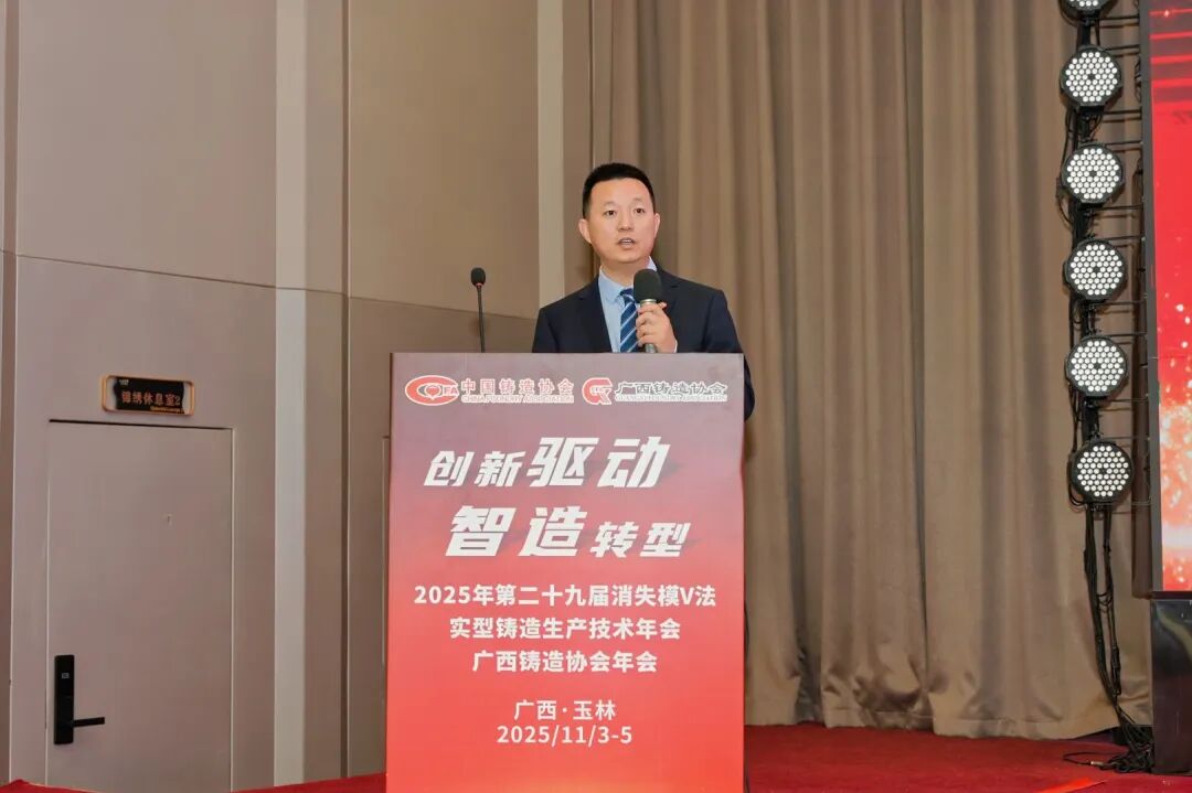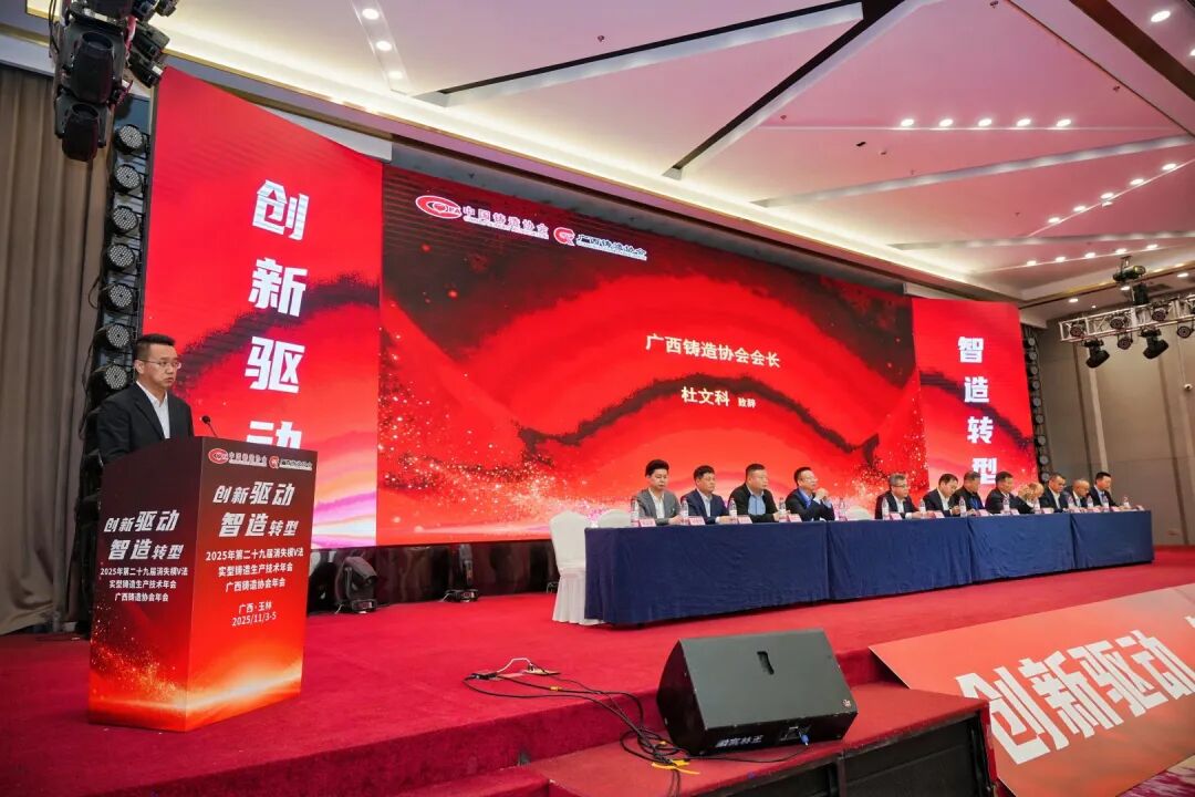 2025年11月3日至5日,中国第二十九届消失模V法实型铸造生产技术年会暨2025年广西铸造协会年会在广西玉林成功举办。本次年会由中国铸造协会主办,中国铸造协会消失模V法实型铸造分会、广西铸造协会、广西玉柴铸造有限公司及广西金创汽车零部件制造有限公司联合承办,本次年会与中国铸造协会消失模V法实型铸造分会联合举办,聚焦“创新驱动 智造转型”主题,吸引了全国超过300余位会员代表、企业家朋友、兄弟省市协会代表和专家学者积极参与,行业同仁齐聚一堂,围绕铸造行业发展核心议题深入交流,凝聚发展共识。会议由中国铸造协会消失模V法实型铸造分会秘书长李立新主持。