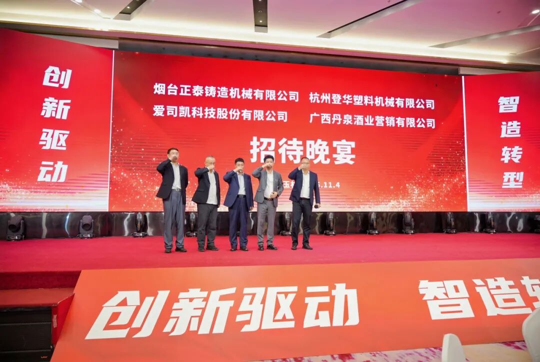 在11月4日“烟台正泰铸造机械有限公司、杭州登华塑料机械有限公司、和爱司凯科技股份有限公司”联合组织招待晚宴,广西铸造协会秘书长周承紫和各特别支持单位代表分别致辞,感谢一直支持并帮助广西铸协及铸造企业、行业发展的铸造同仁、合作伙伴的支持和帮助。
